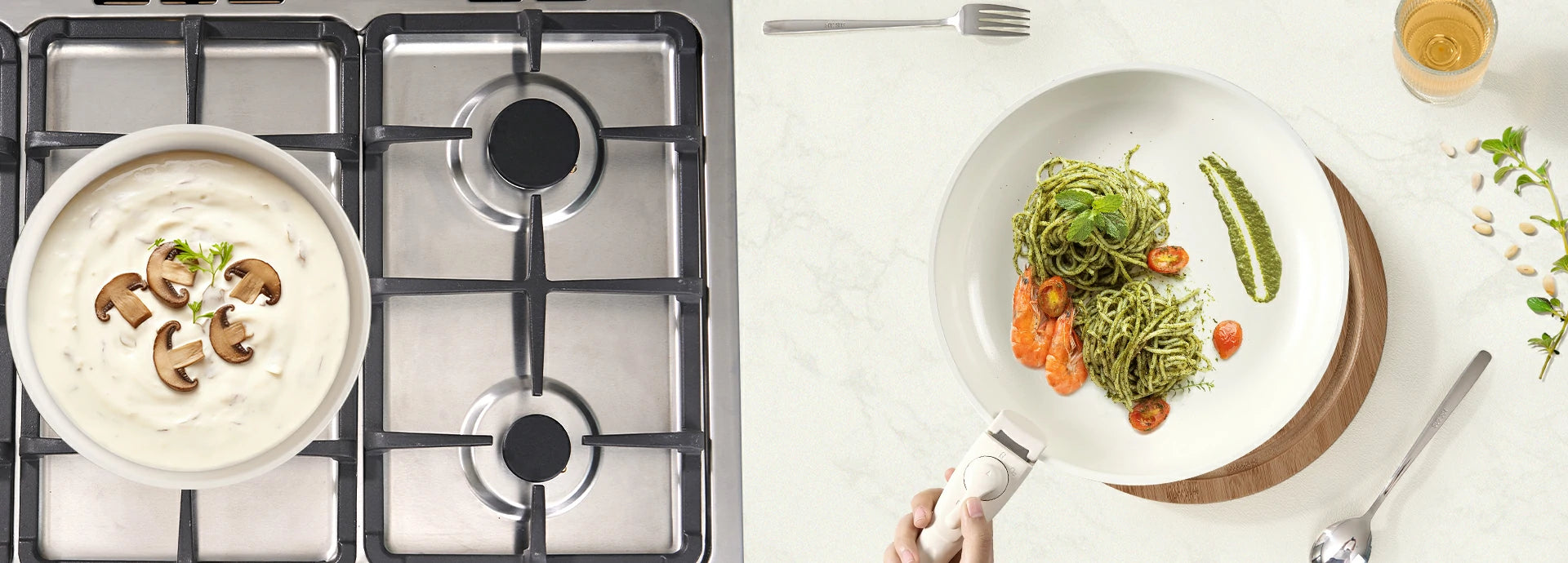 This smart innovation goes beyond space-saving benefits—it seamlessly transitions from stovetop to oven and from dining table to refrigerator storage.