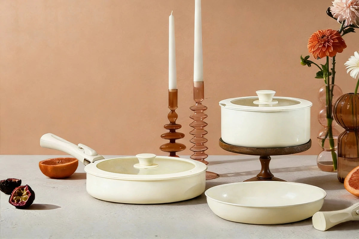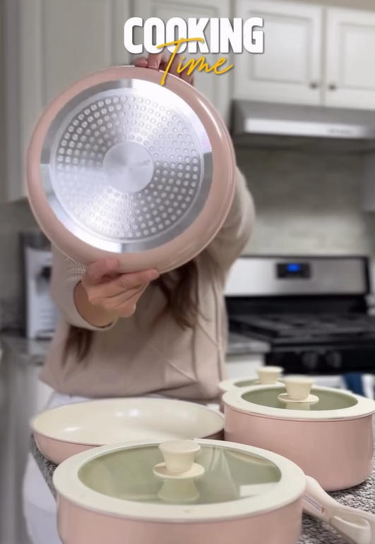 The ceramic coating of these pots and pans is crafted from natural rocks, and is free from PFOA, PFAS, and PFOS, as well as heavy metals like lead and cadmium, and offers effortless non-stick performance with minimal oil, easy cleaning, and promotes healthier cooking.