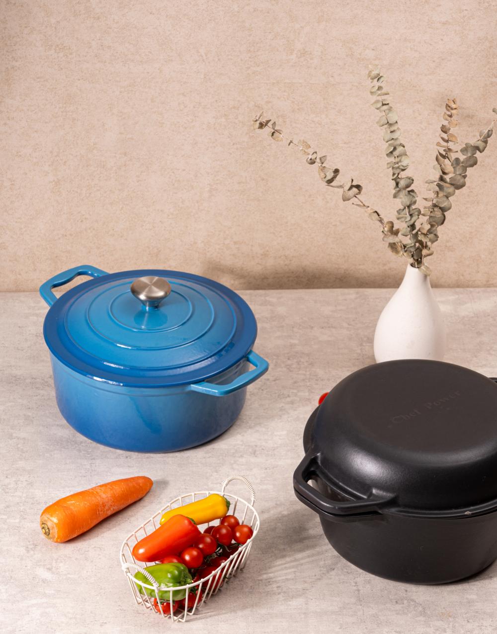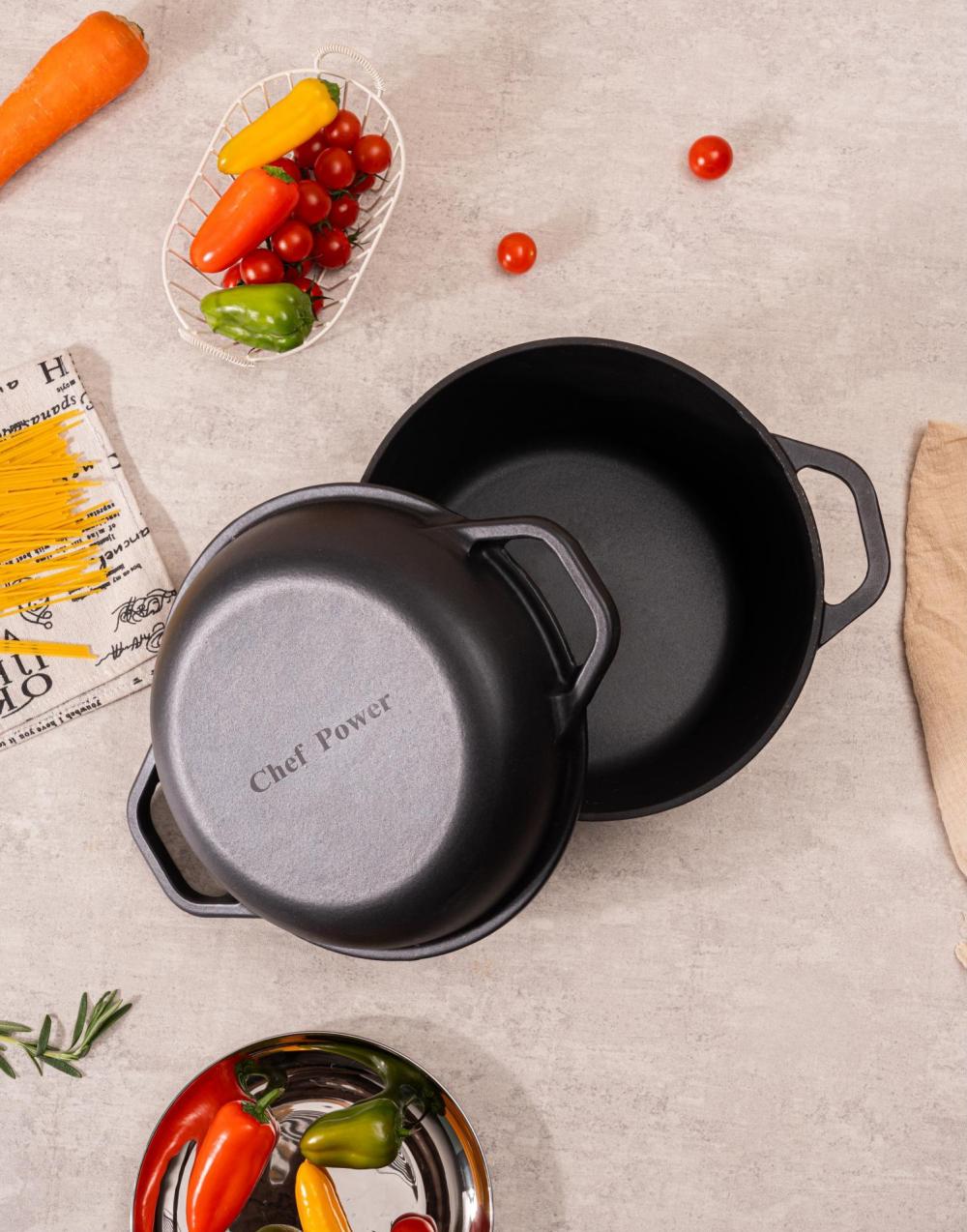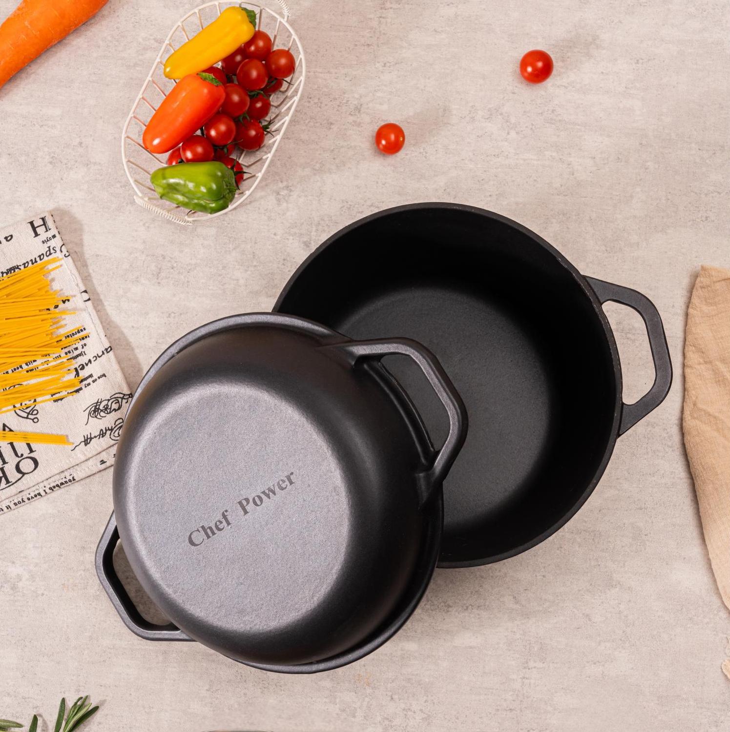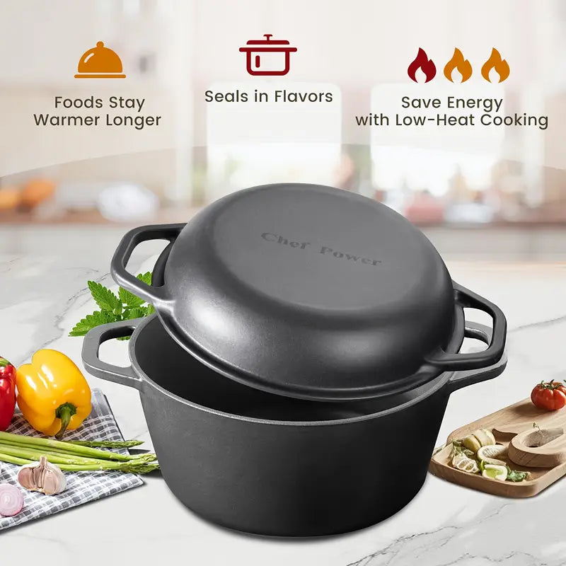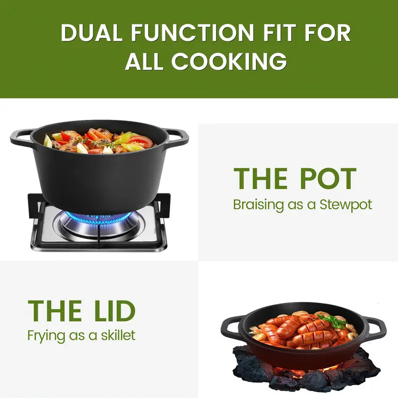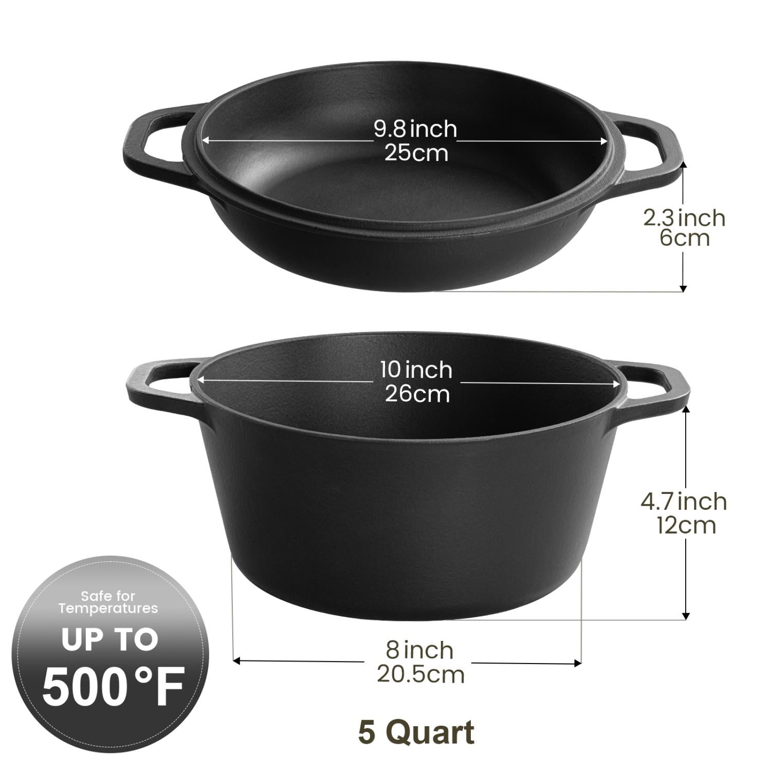 - Versatile: This 5 quart dutch oven is equipped with a convertible shallow lid, catering to all your cooking methods—from home cooking to outdoor adventures. Whether you're making soups, stews, baking, frying, grilling, or sautéing meats and vegetables, this dutch oven cookware has you covered.