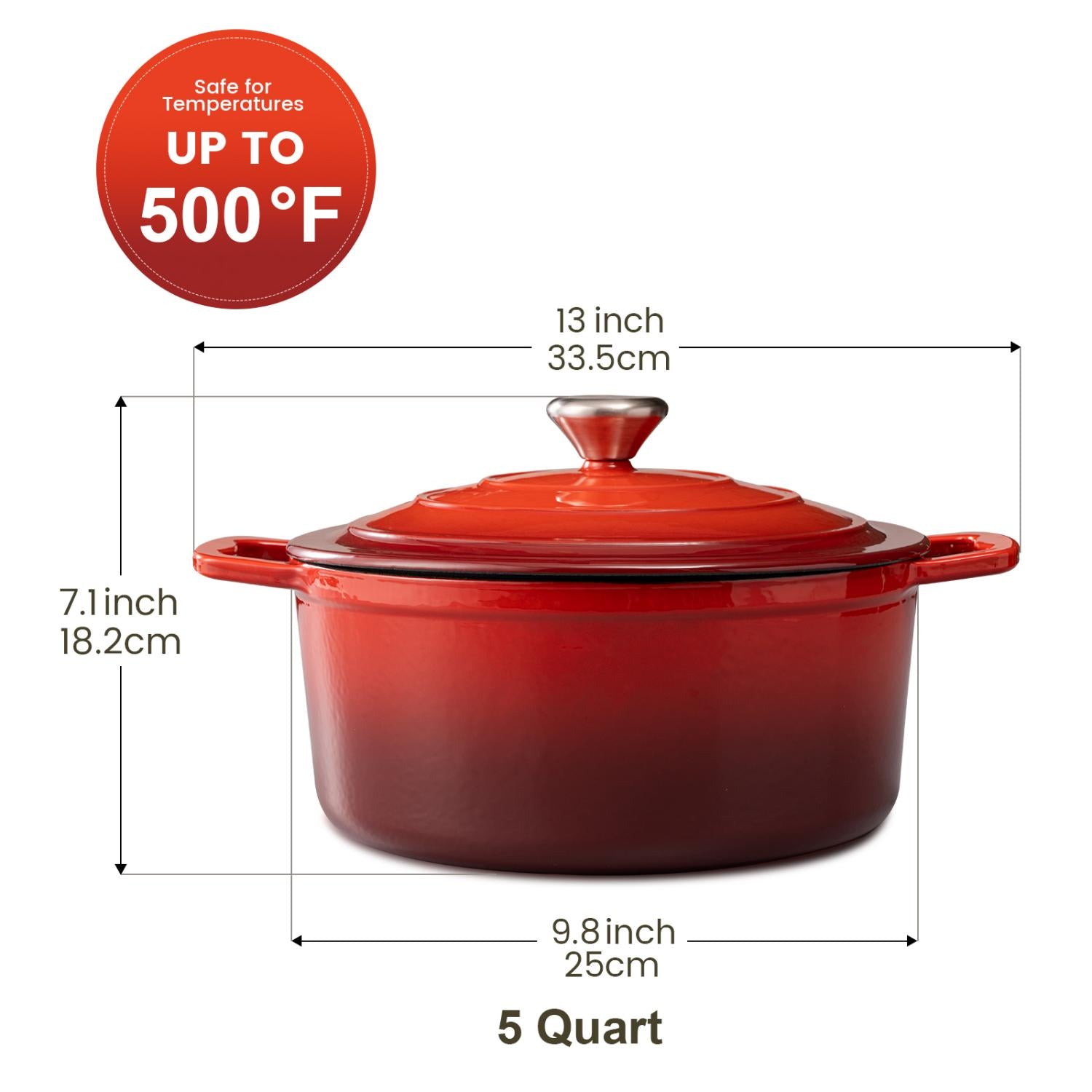 5 Quart Enameled Cast Iron Dutch Oven | Gradient Red