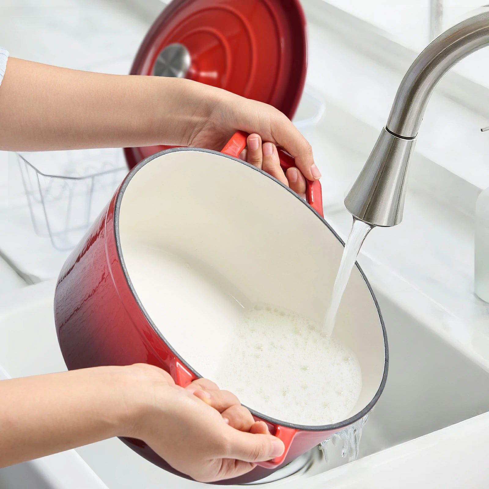 Easy-Clean Non-Toxic Interior: The smooth, PFAS-free enamel coating resists sticking and staining, making cleanup surprisingly simple.