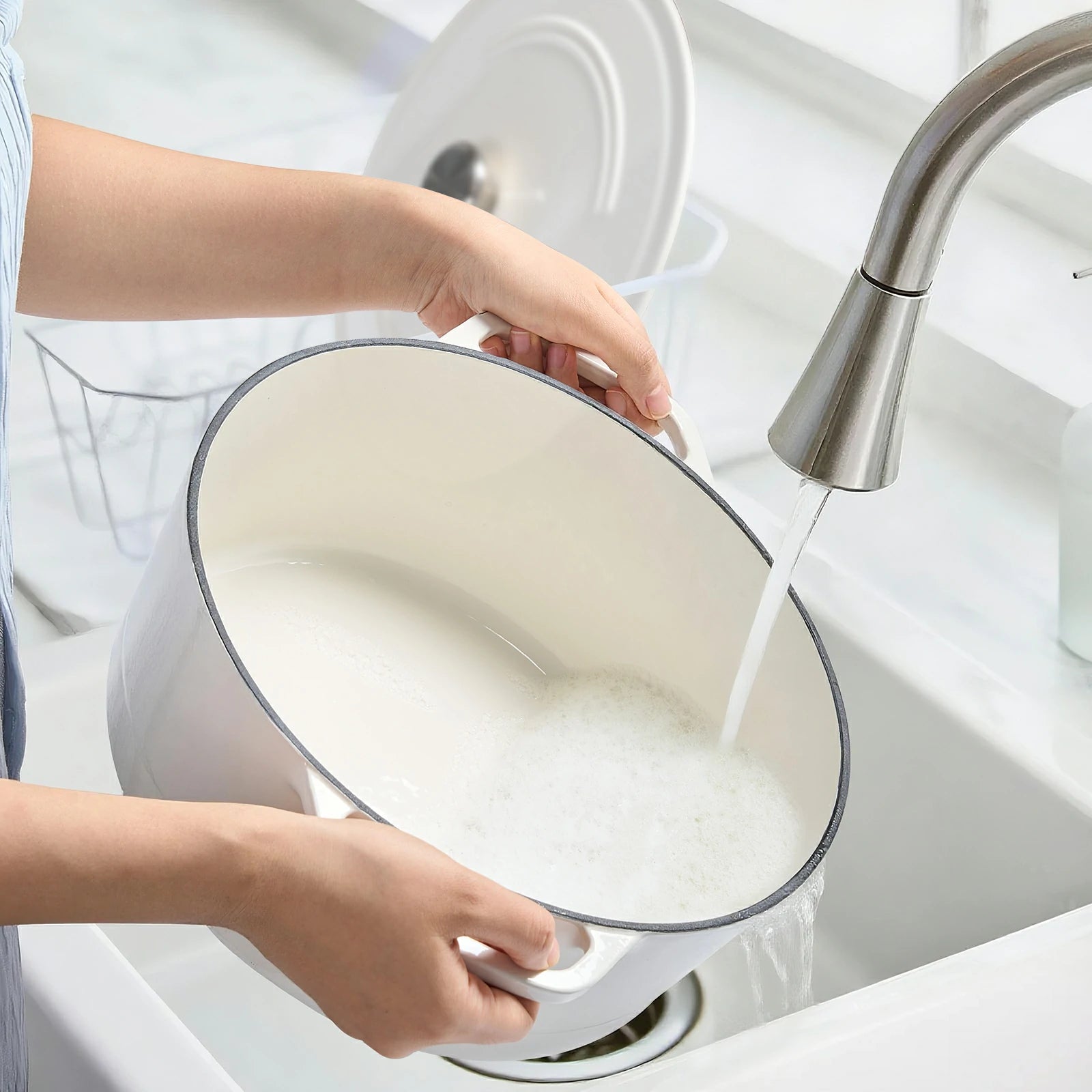 Easy Maintenance: The smooth, light-colored enamel surface makes cleaning effortless, preventing staining and ensuring that your pot roast in Dutch oven or freshly baked bread comes out beautifully every time.