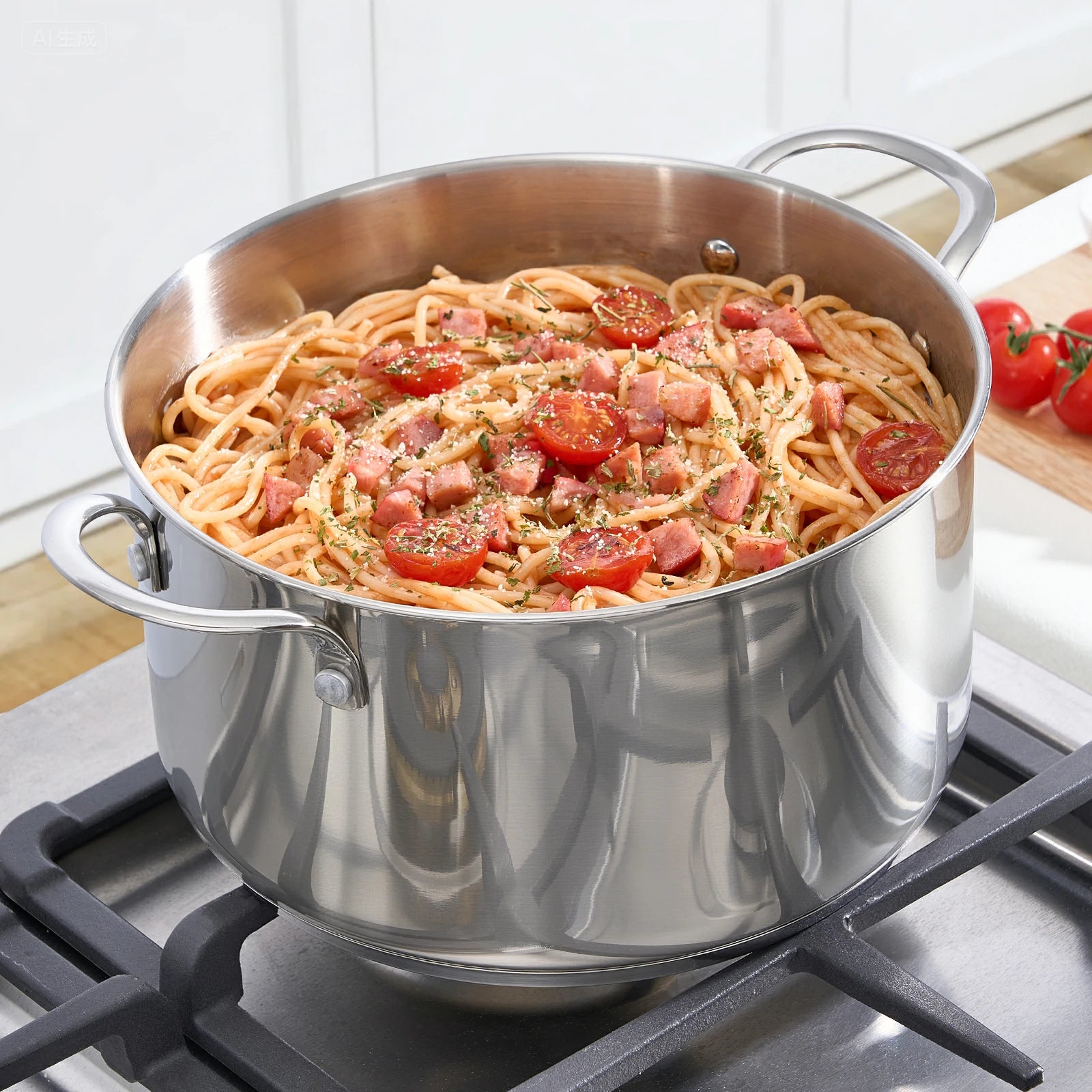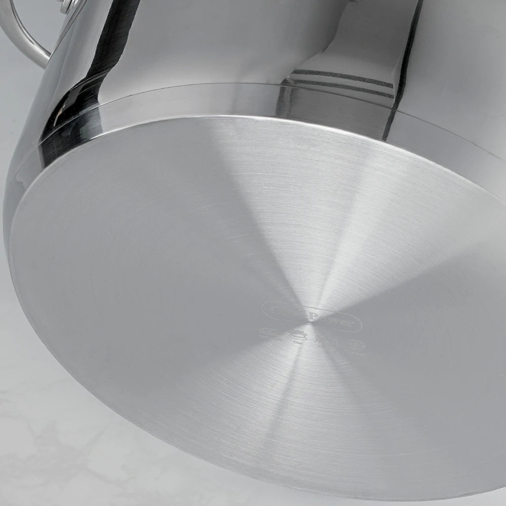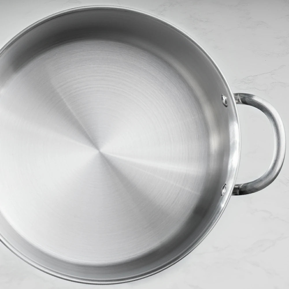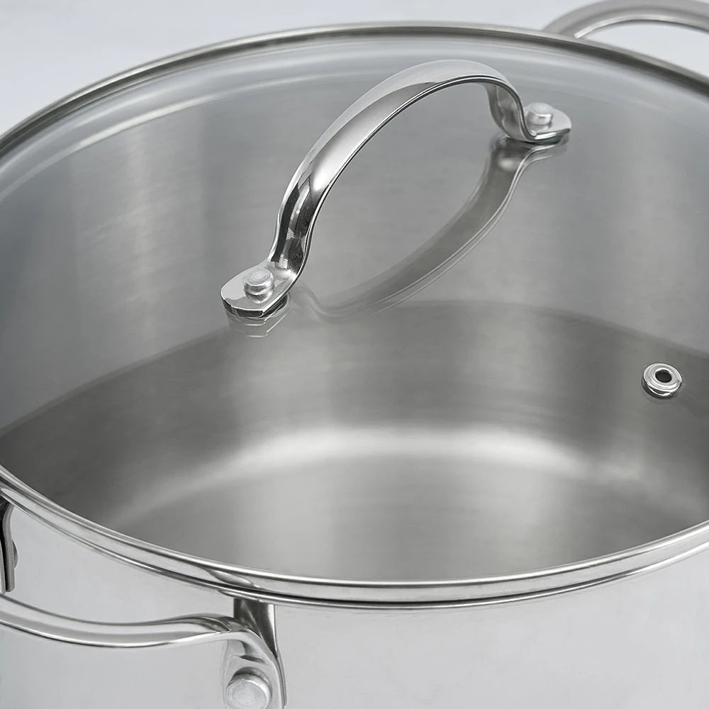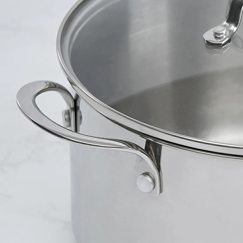 Discover the elegant polished finish of our stainless steel stew pot, adding style to your kitchen.