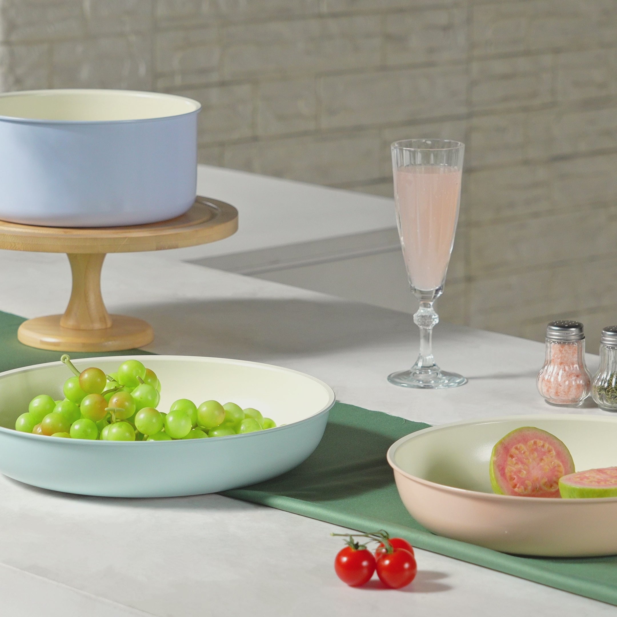 Tired of cluttered cabinets and chemical concerns? This vibrant ceramic cookware set is the ultimate solution for healthy, convenient cooking in the modern kitchen, RV, or campsite. Featuring naturally non-stick, toxin-free ceramic coating and revolutionary removable handles.