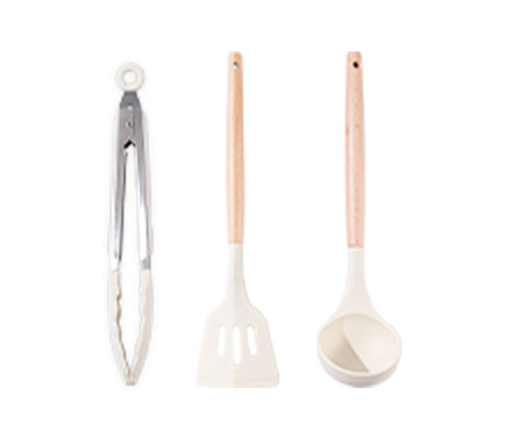 · Utensil set : Tongs, wooden handle silicone slotted turner and soup ladle