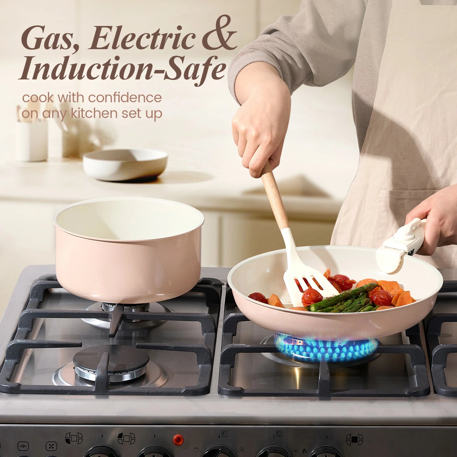 Ceramic Nonstick 19-Piece Cookware Set | Light Pink
