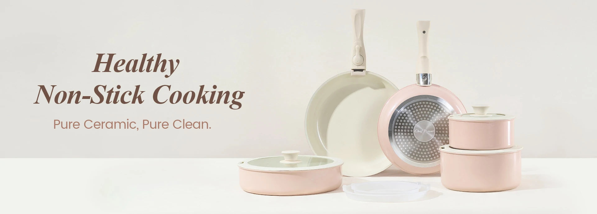 Healthy Ceramic Coating: Chef Power's ceramic coating is derived from natural rocks, not synthetic chemicals. It is free from PFAS, PFOA, PTFE, PFOS, Teflon, lead, and cadmium. Cook with absolute peace of mind, every time.