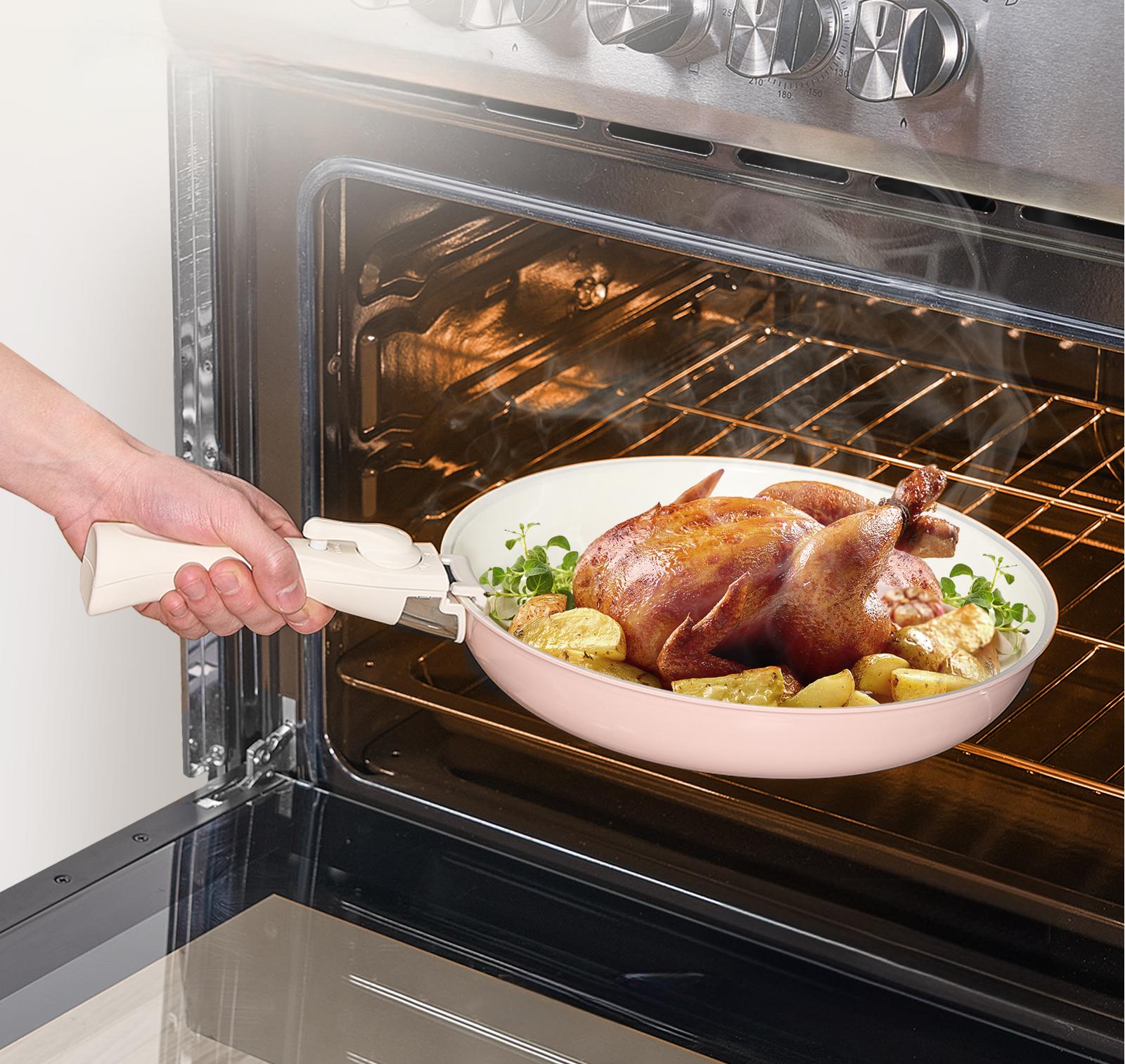 Universal Stovetop & Oven Safe: Go seamlessly from induction, gas, electric, ceramic, or glass stovetop to oven(550°F). It can be used as a cookware, a grill pan, a tableware, or a food storager. One set for every cooking method and recipe.