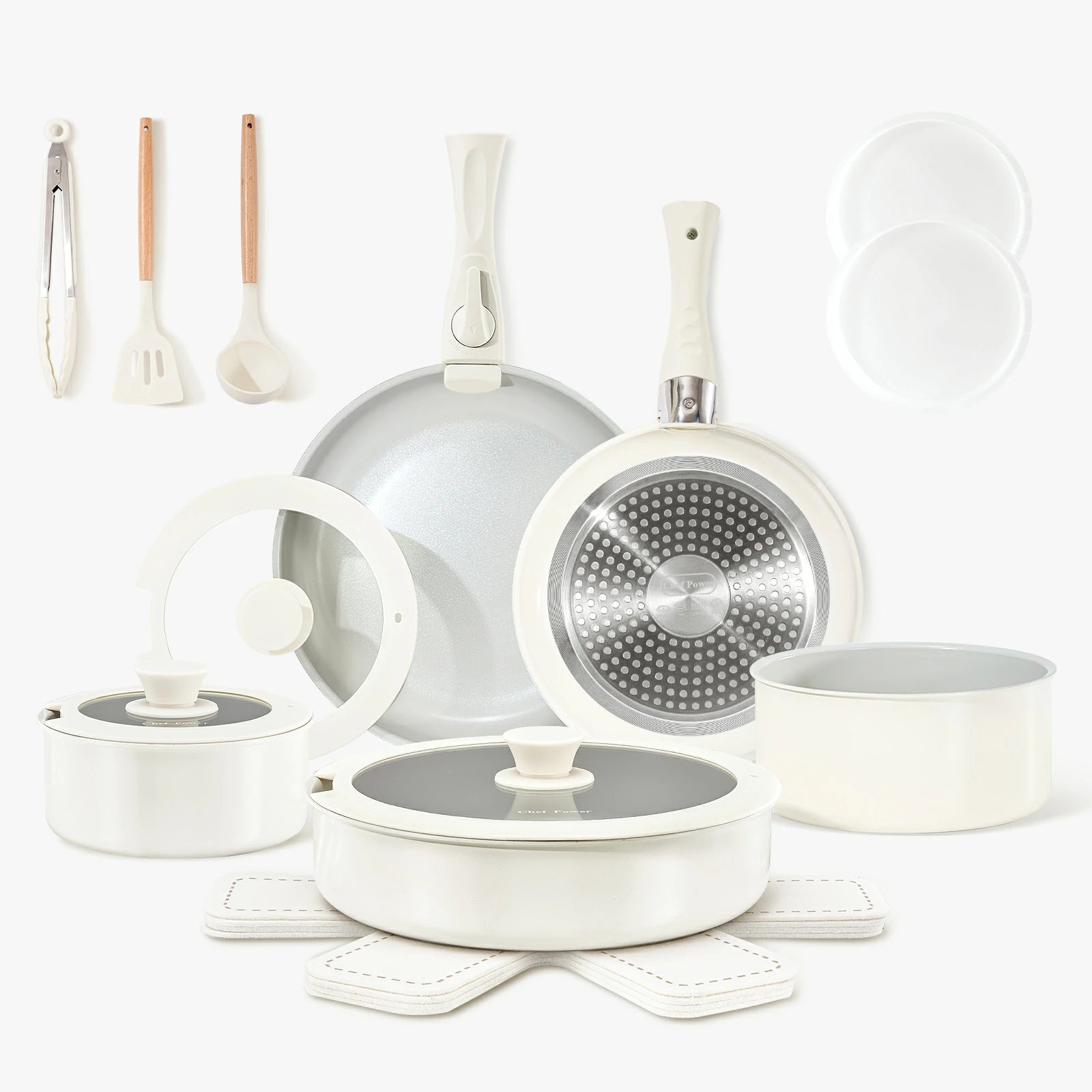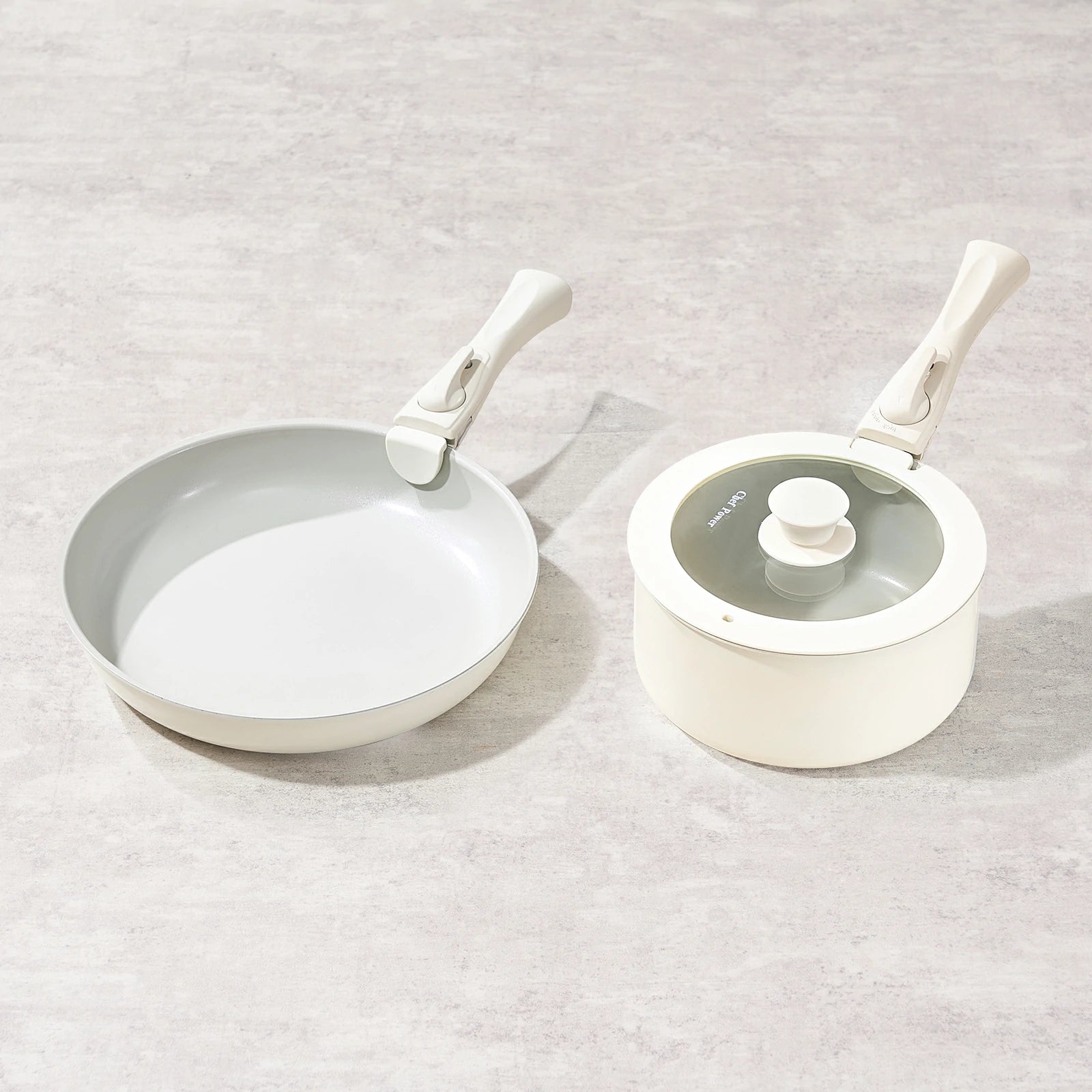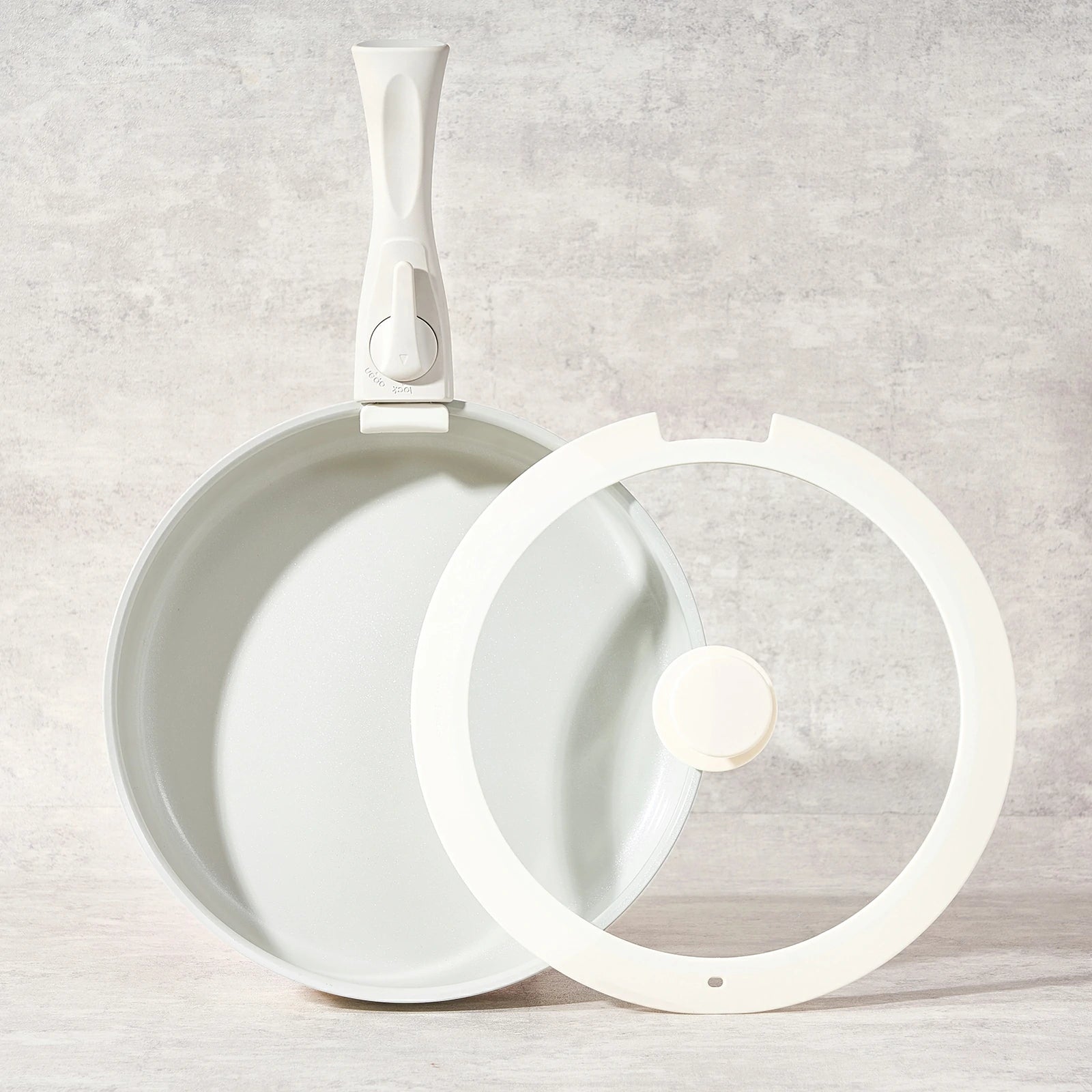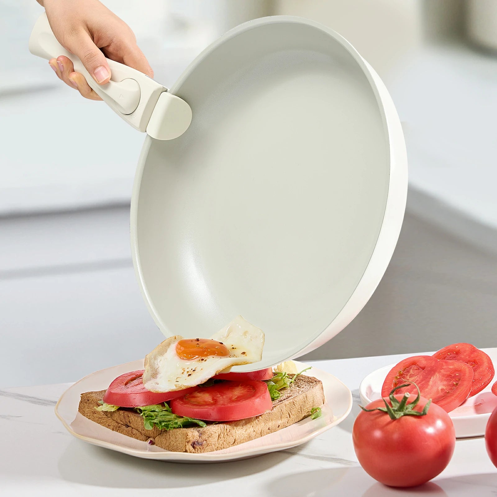 Two sturdy handles with twist-lock tech grip securely for cooking, then pop off to save space—perfect for oven-to-table or compact storage.