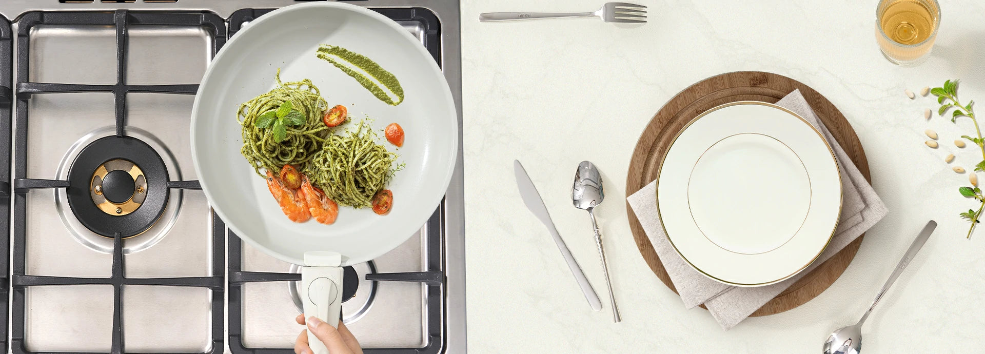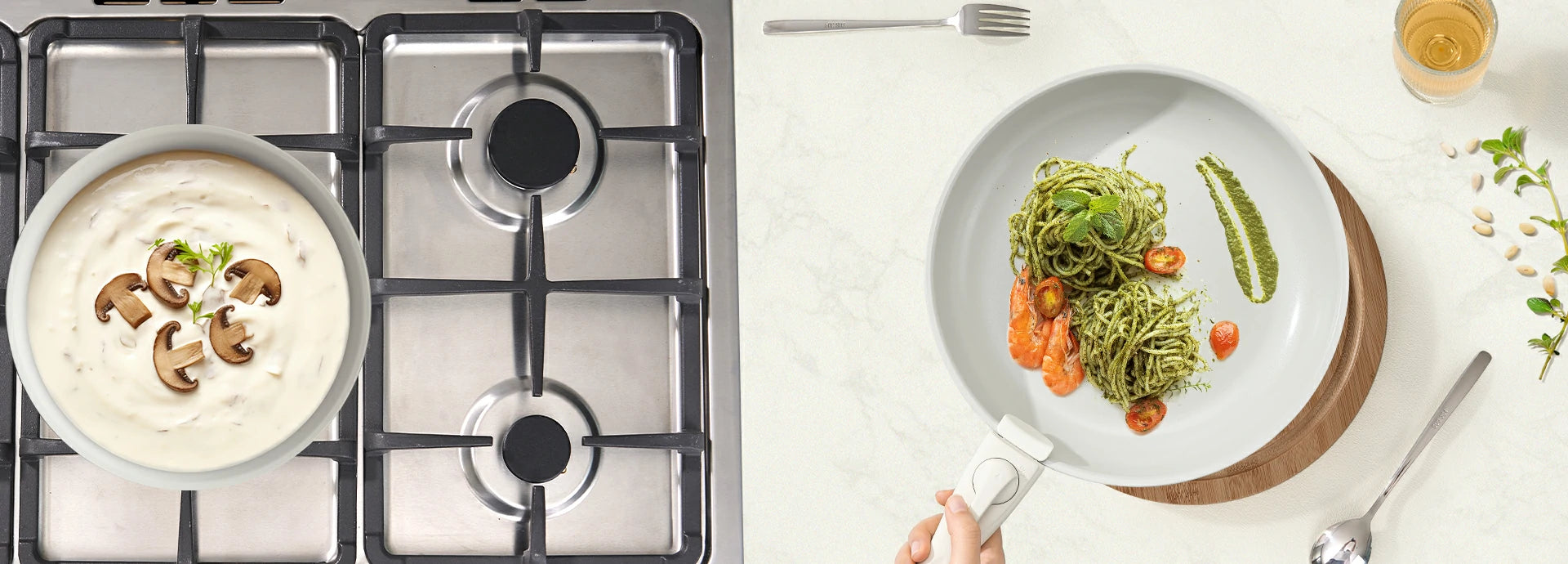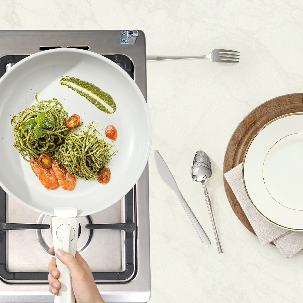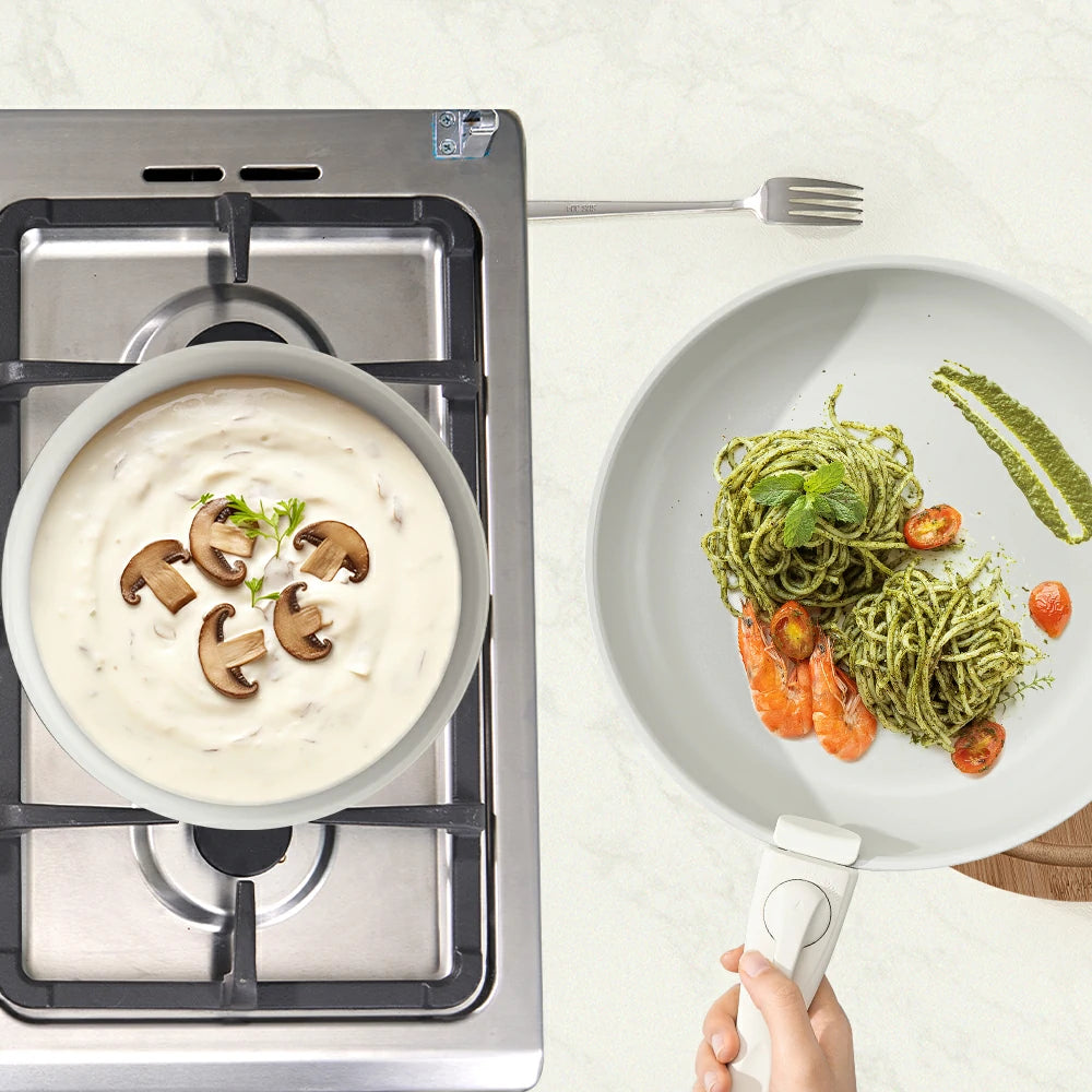 While traditional nonstick pans can release fumes and chemicals, our ceramic coating is crafted from natural rocks. It's the safer, non-toxic non-stick you can trust at home, in your RV or at the campsite.