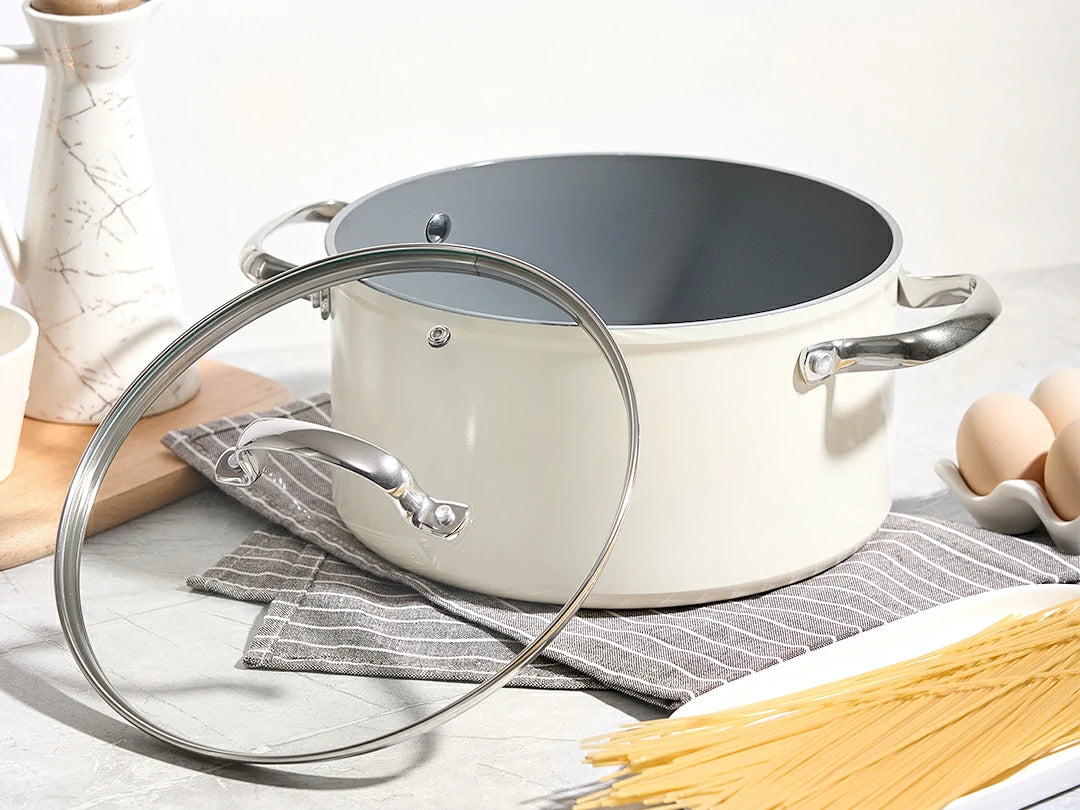 Better cooking starts here. Our quality ceramic cookware set features essential pots and pans designed for everyday meals, without the harmful chemicals like PTFE, PFOA, and PFAS. The natural ceramic nonstick coating delivers effortless cooking, easy cleanup, and complete peace of mind. The durable construction works on all stovetops and transitions seamlessly to oven use.
