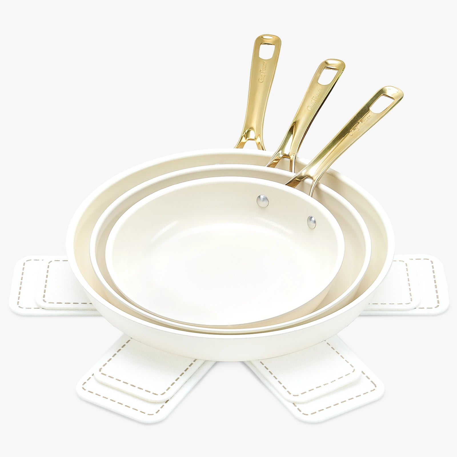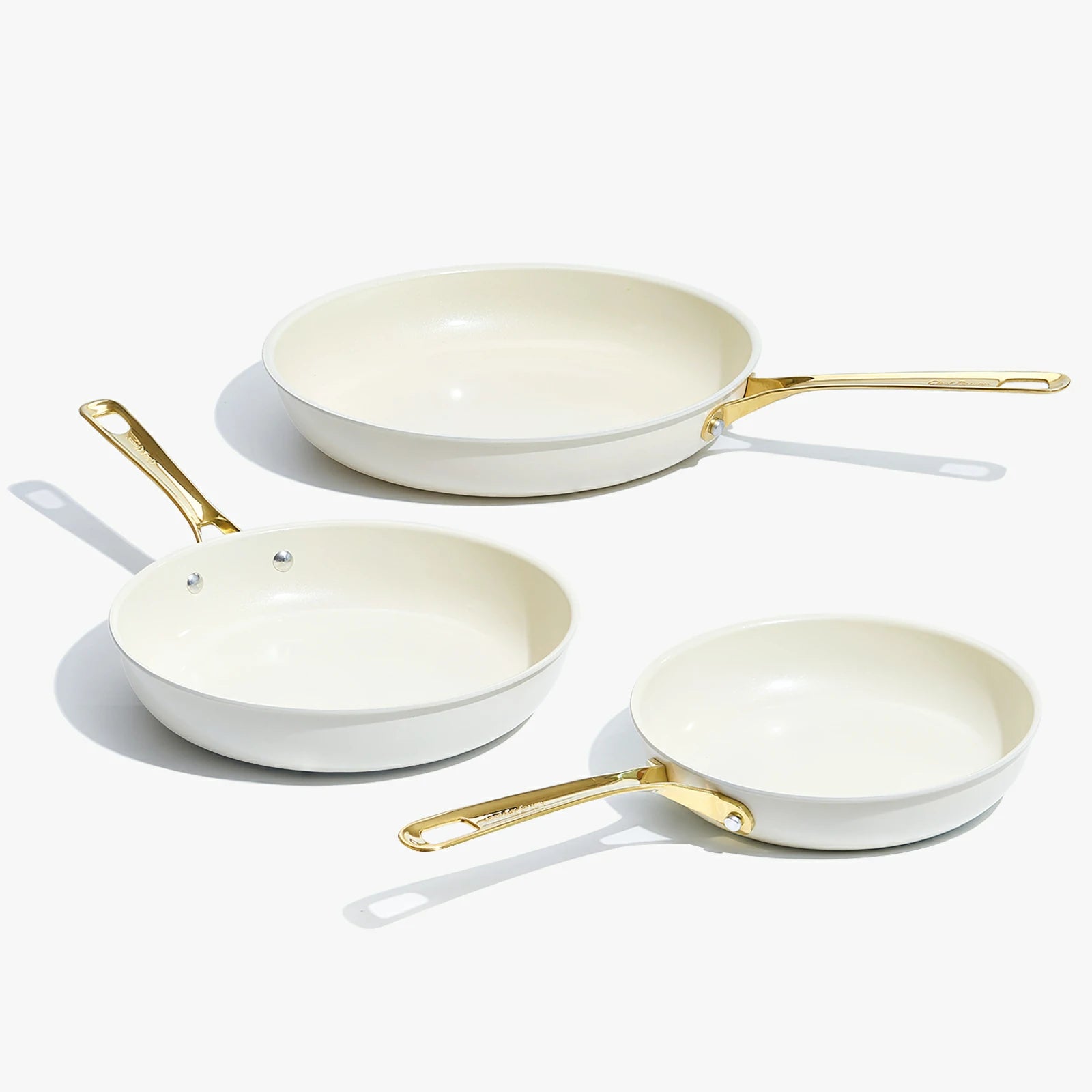 Stars 3-Piece Ceramic Nonstick Frying Pan Set | Cream White