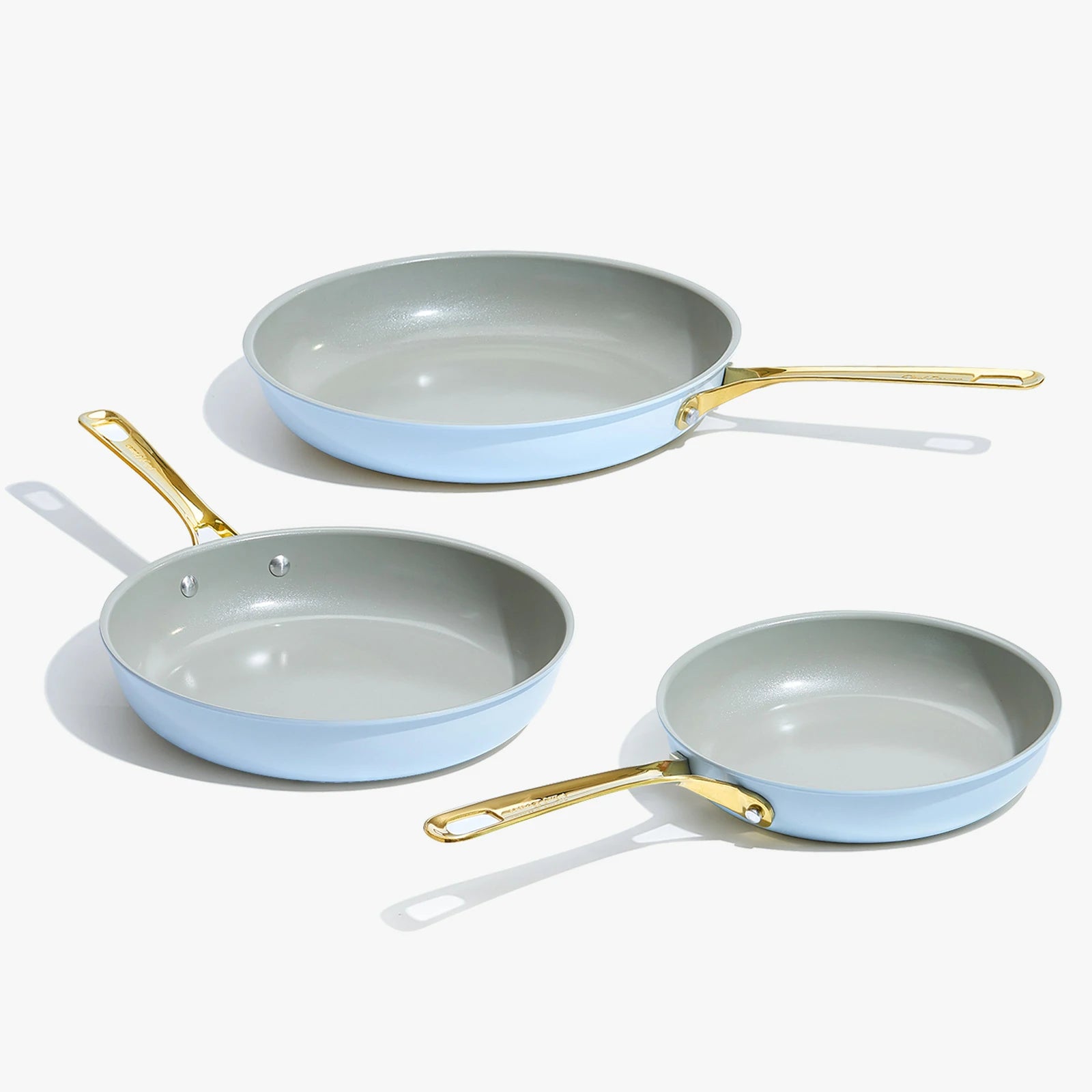 Stars 3-Piece Ceramic Nonstick Frying Pan Set | Light Blue