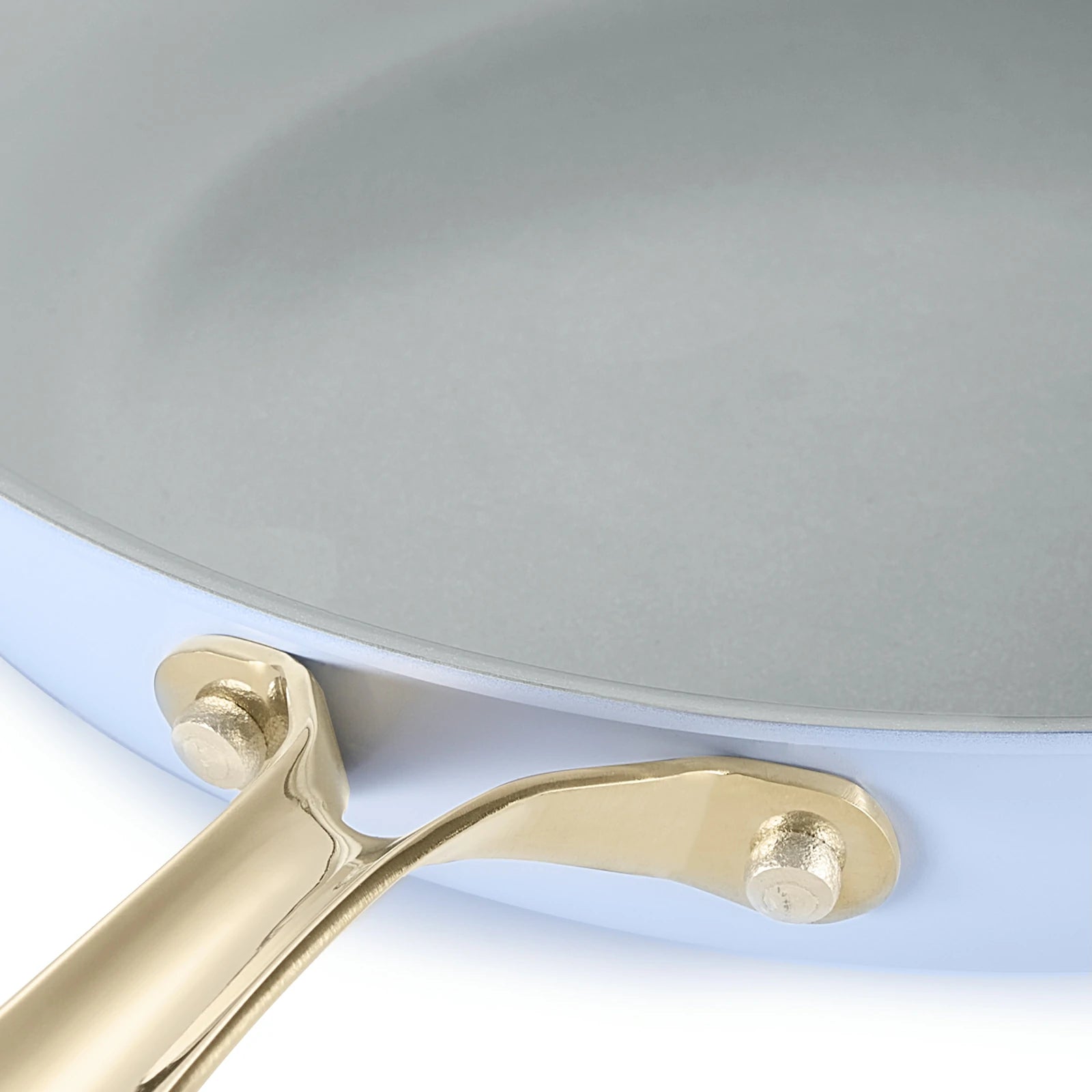 Stars 3-Piece Ceramic Nonstick Frying Pan Set, PFAS-Free Cookware with Light Golden Handles in Light Blue Skip to content