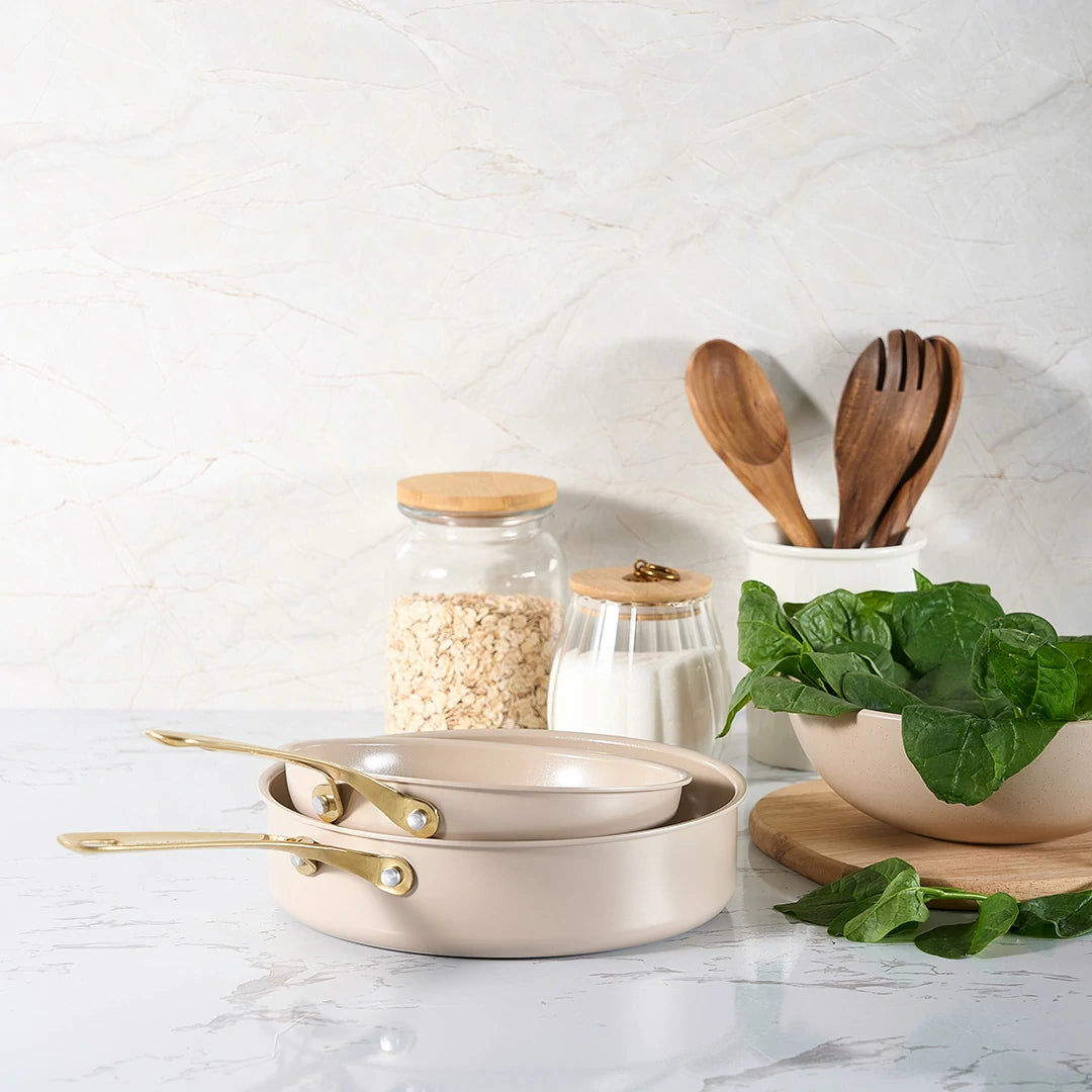 Each piece features a natural mineral-derived ceramic nonstick surface and blend with eco-friendly titanium for reinforced. No PFAS, no "forever chemicals", just a smooth, naturally slick finish you can feel good about using every day.