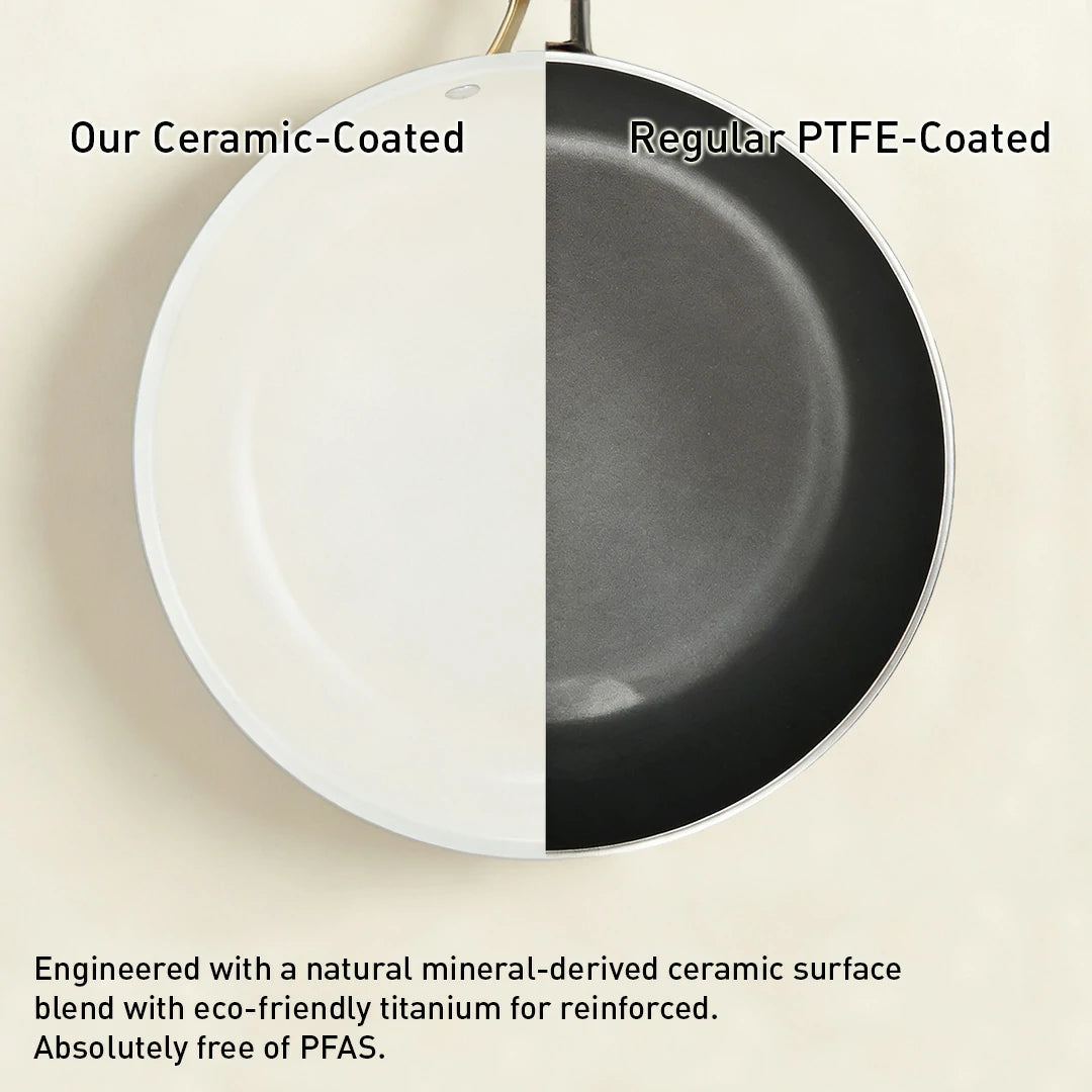 A smooth ceramic-titanium blend, crafted from natural minerals—without Teflon®, PFAS, or other harmful chemicals. Cook freely, with peace of mind in every ingredient.